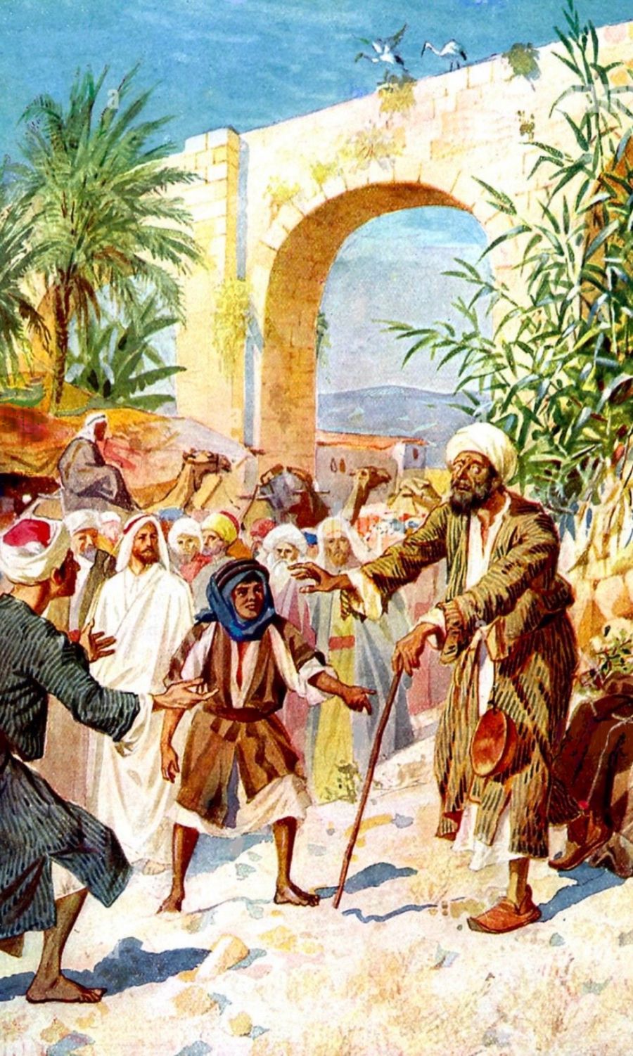 The blind man without a name and crouched at the edges represents us: he is not biologically blind, but one who adjust himself at random.