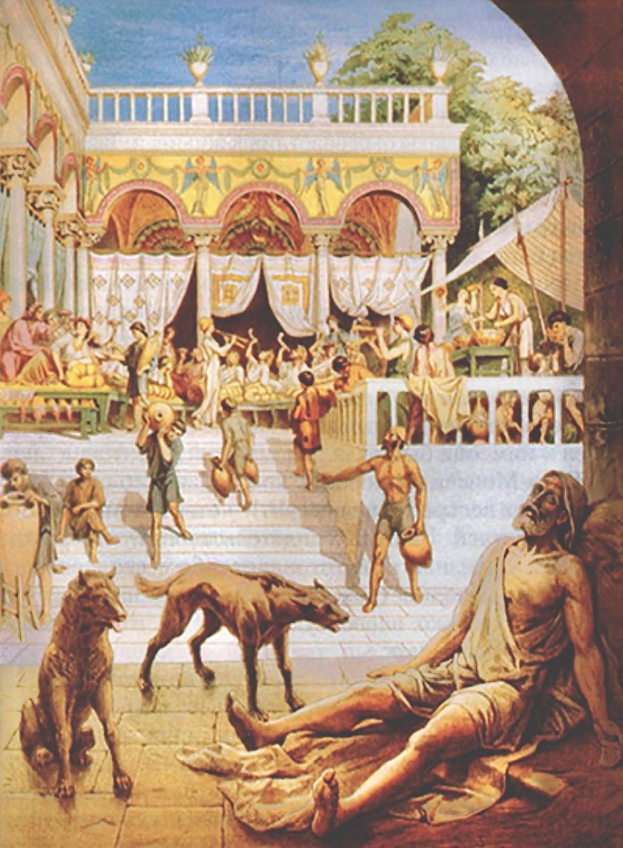 L’ultima frase è doppiamente terribile: “Se non ascoltano Mosè e i Profeti, non saranno persuasi neanche se uno risorgesse dai morti”. Un’affermazione che sembra disperata, come se nulla possa cambiare un cuore di pietra, ed è ancora più terribile sulla bocca di Gesù. Quando infatti Luca scrive il vangelo sapeva bene che la Risurrezione di Cristo non aveva convertito tutti, anzi, aveva indurito ancor più il cuore di alcuni. Passiamo alla storia del ricco epulone e del povero Lazzaro: del ricco non sappiamo molto, nemmeno il nome; non è detto che sia malvagio, anzi, più tardi penserà a salvare i suoi fratelli dalla sventura nell’aldilà. Vive però nel suo mondo così immerso nel suo comfort, come i Samaritani di cui parla Amos nella prima lettura, da non vedere nemmeno il mendicante che muore di fame sulla sua porta e che si accontenterebbe dei suoi avanzi. Il nome del povero è Lazzaro, che significa Dio aiuta, e questo già dice molto: Dio lo aiuta, non perché sia virtuoso, ma semplicemente perché è povero. Questa forse è la prima sorpresa che Gesù riserva ai suoi ascoltatori: questa storia era un noto racconto proveniente dall’Egitto, parla di due personaggi un ricco pieno di peccati e un povero pieno di virtù: giunti nell’aldilà, pesati sulla bilancia, vengono valutate le azioni buone e cattive sia dei ricchi che dei poveri . I buoni, sia ricchi che poveri, erano premiati, mentre i cattivi, ricchi o poveri, puniti. Anche i rabbini, prima di Gesù, raccontavano storie simili : il ricco era figlio di un pubblicano peccatore mentre il povero un uomo molto devoto; anche loro pesati sulla bilancia e valutati accuratamente i meriti degli uni e degli altri, il devoto risultava più meritevole del figlio del pubblicano. Gesù sconvolge un po’ questa logica: non calcola i meriti e le buone azioni perché non si dice che Lazzaro sia virtuoso e il ricco cattivo ma constata semplicemente che il ricco è rimasto ricco tutta la vita, mentre il povero è rimasto povero, alla sua porta: ciò significa l’abisso di indifferenza che si è creato tra ricco e povero, semplicemente perché il ricco non ha mai aperto il portone. Altro dettaglio importante nel racconto di Gesù: non è del tutto vero che non sappiamo nulla del ricco, perché ci dice come era vestito: di porpora e lino, chiara allusione ai vestiti dei sacerdoti.Il colore porpora, originariamente colore dei vestiti reali, era diventato dei sommi sacerdoti perché servivano il re del mondo; il lino era il tessuto della tunica del sommo sacerdote. Gesù vuol dire che puoi essere anche il Sommo Sacerdote ma se disprezzi i tuoi fratelli, non meriti il titolo di figli di Abramo. Infatti, Abramo è citato sette volte ed è certamente una chiave del testo. La domanda di Gesù è: “Chi è veramente figlio di Abramo?” e risponde che se non si ascolta la Legge e i Profeti, se si è indifferenti alla sofferenza dei fratelli, nonsi è figli di Abramo. E va oltre: il povero avrebbe voluto mangiare le briciole del ricco, ma erano piuttosto i cani a leccare le sue piaghe. I cani erano animali impuri… quindi anche se il ricco pio si fosse preso la briga di aprire il portone, sarebbe stato comunque scandalizzato e avrebbe fuggito quell’uomo impuro leccato dai cani… La lezione di Gesù è dunque: Vi preoccupate dei meriti, cercate di rimanere puri, siete orgogliosi di essere discendenti di Abramo… ma dimenticate l’essenziale.. Non servono segni straordinari per convertirsi: basta la Legge con i Profeti e per noi basta il Vangelo: ma occorre viverli!