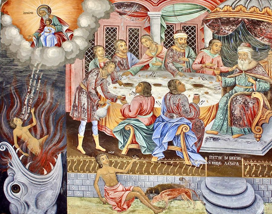 La parabola del povero Lazzaro e del ricco smodato evoca l’uso diligente delle ricchezze, la premura verso i bisognosi, ed è un richiamo alla conversione, poiché dopo la morte il giudizio individuale sarà irreversibile.