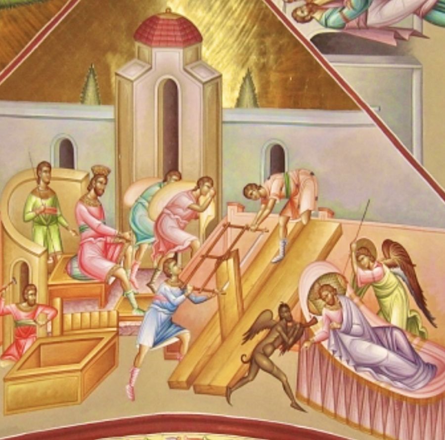 "Gli accadde, durante un viaggio, d’incontrare un poverello. Scorgendone la nudità, ne fu rattristato nel cuore e disse al compagno con voce di lamento:
